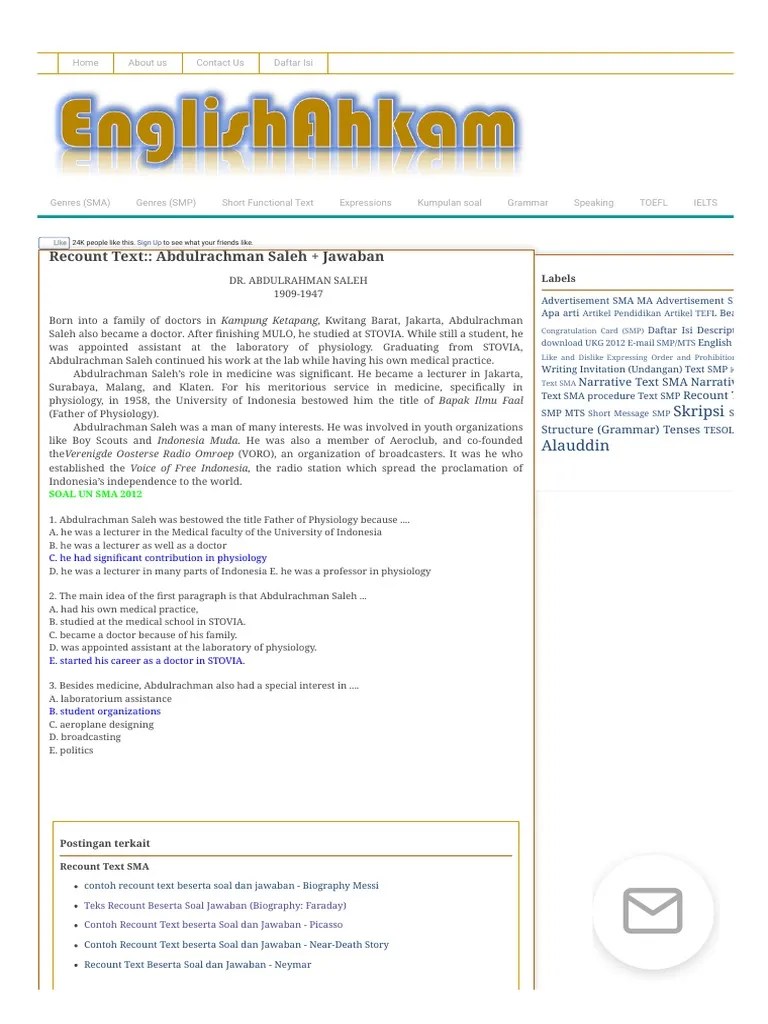 Pelajari contoh soal bahasa inggris descriptive text smp beserta pembahasan. soal dan pembahasan lengkap reading comprehension pada test toefl. contoh discussion text beserta soal dan jawaban: These people believe that students can study on their own and do better without the nagging worry and pressure exerted by examinations. Karena bahasa inggris sangat penting digunakan untuk berkomunikasi baik nasional baik internasional agar sahabat sbi lebih mahir dalam bahasa inggris, berikut ini akan admin sajikan beberapa soal bahasa inggris yang berkaitan dengan complete the. Kumpulan lengkap contoh soal tentang song beserta jawabannya. Dalam bahasa inggris kita mengenal adanya jenis text bukan. Setelah mengetahui apa dan bagimana teks news item itu ditulis berikut disajikan contoh soal multiple choice news item text yang bisa dibuat latihan. Mencari informasi terkait contoh soal proverb dan riddle beserta jawabannya. contoh soal psikotes polri dan jawabannya. soal soal song amazing structure descriptive text and. Cuplikan soal ujian sekolah bahasa inggris paket a. Research essay on dolphin assisted therapy.